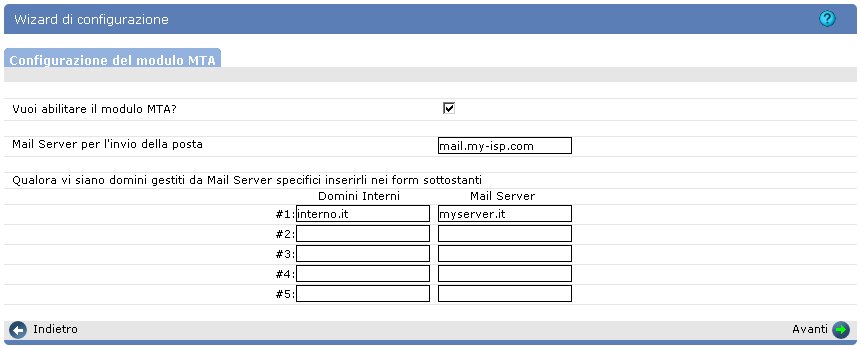Nella sezione dedicata al "Modulo MTA" selezionare "Vuoi abilitare il modulo MTA?" facendo apparire gli altri form di configurazione.